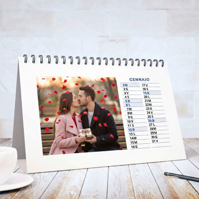 - Opzione “No Grafica” disponibile nello Standard, per la massima libertà creativa: carica per ogni mese un file con la tua composizione, completa di immagini e datario. Ricorda di rispettare i margini di taglio (2%) e la rilegatura superiore (circa 8 mm).