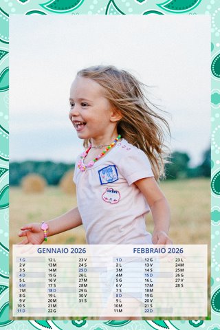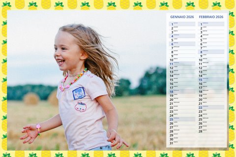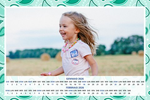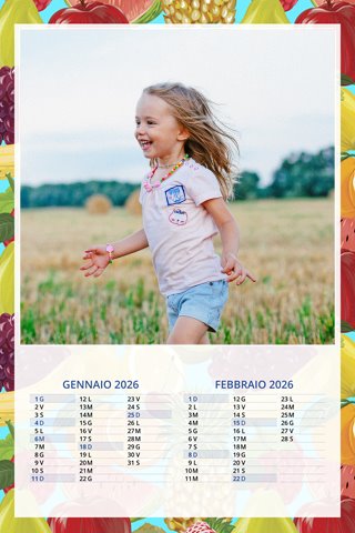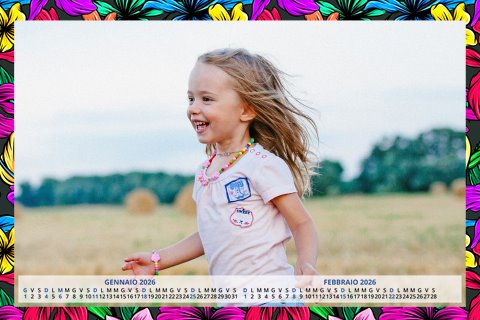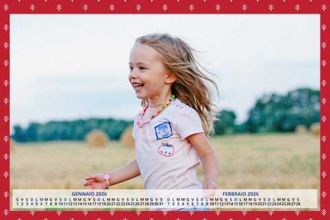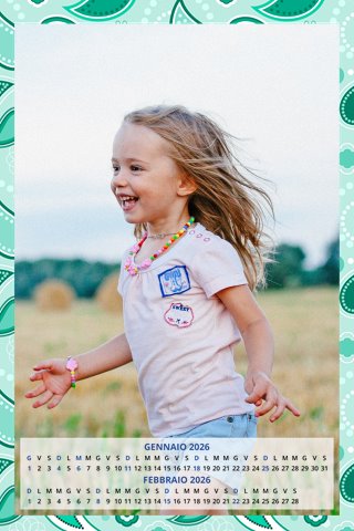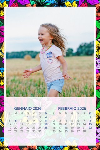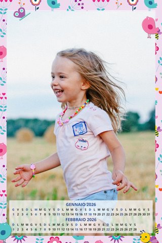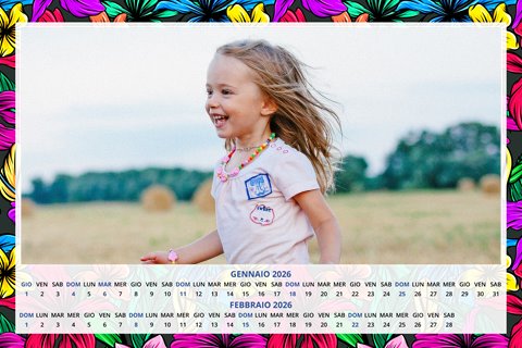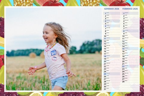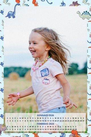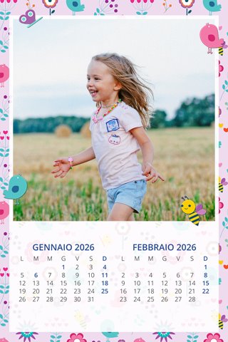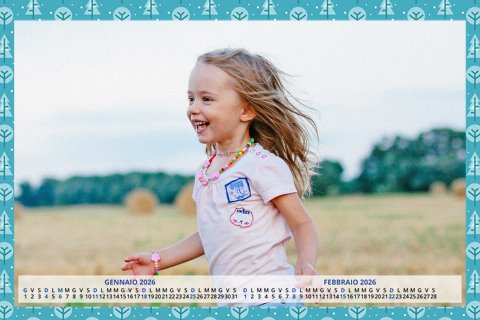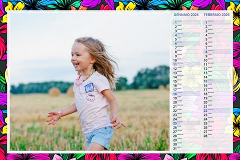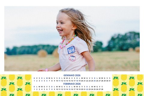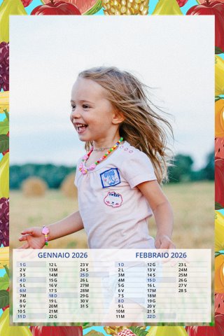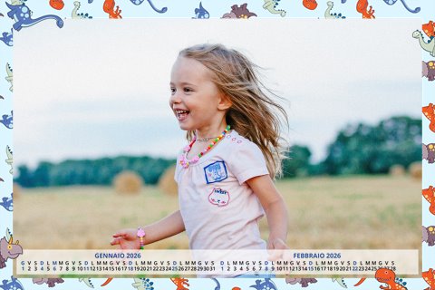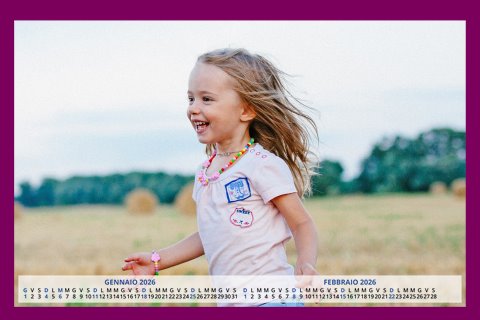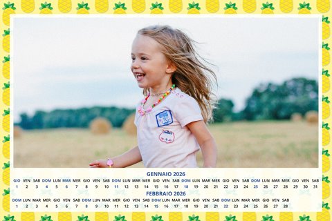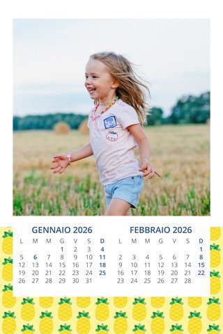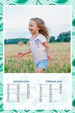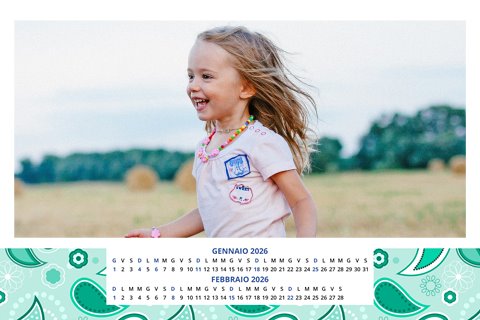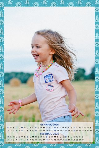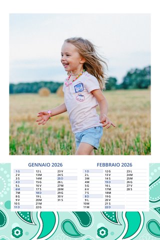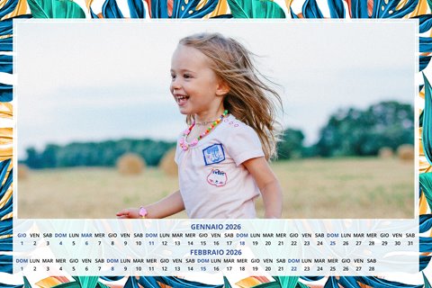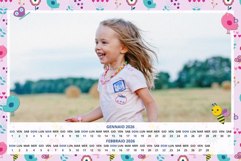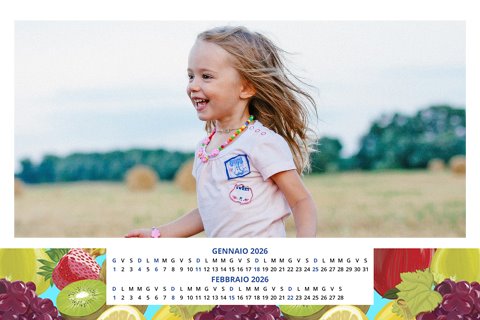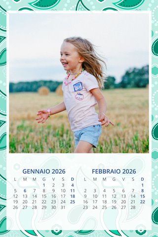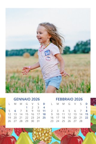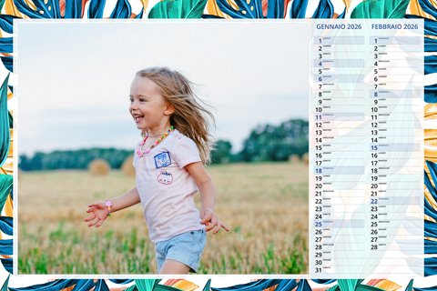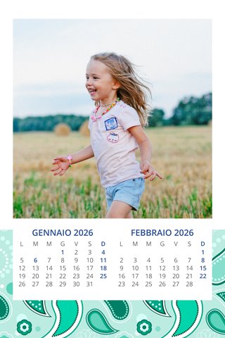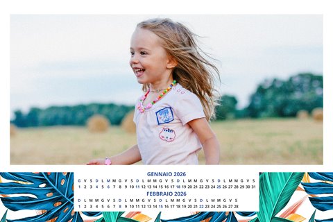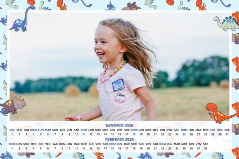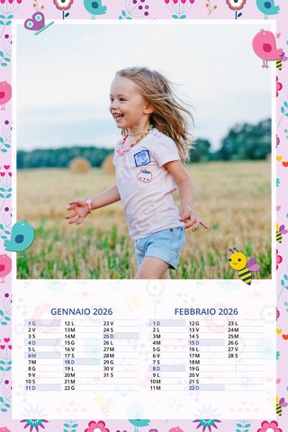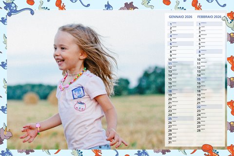I Calendari Bimestrali sono stampati su carta fotografica; si compongono di 6 pagine, su ciascuna delle quali sono riportati due mesi. Sono necessarie 6 fotografie da inserire nelle raffinate grafiche offerte. Il posizionamento dell’immagine è determinante per la qualità del risultato finale: potrai modificare l’anteprima del tuo calendario, ed avere quindi il risultato più soddisfacente. E’ possibile effettuare questa operazione direttamente online.